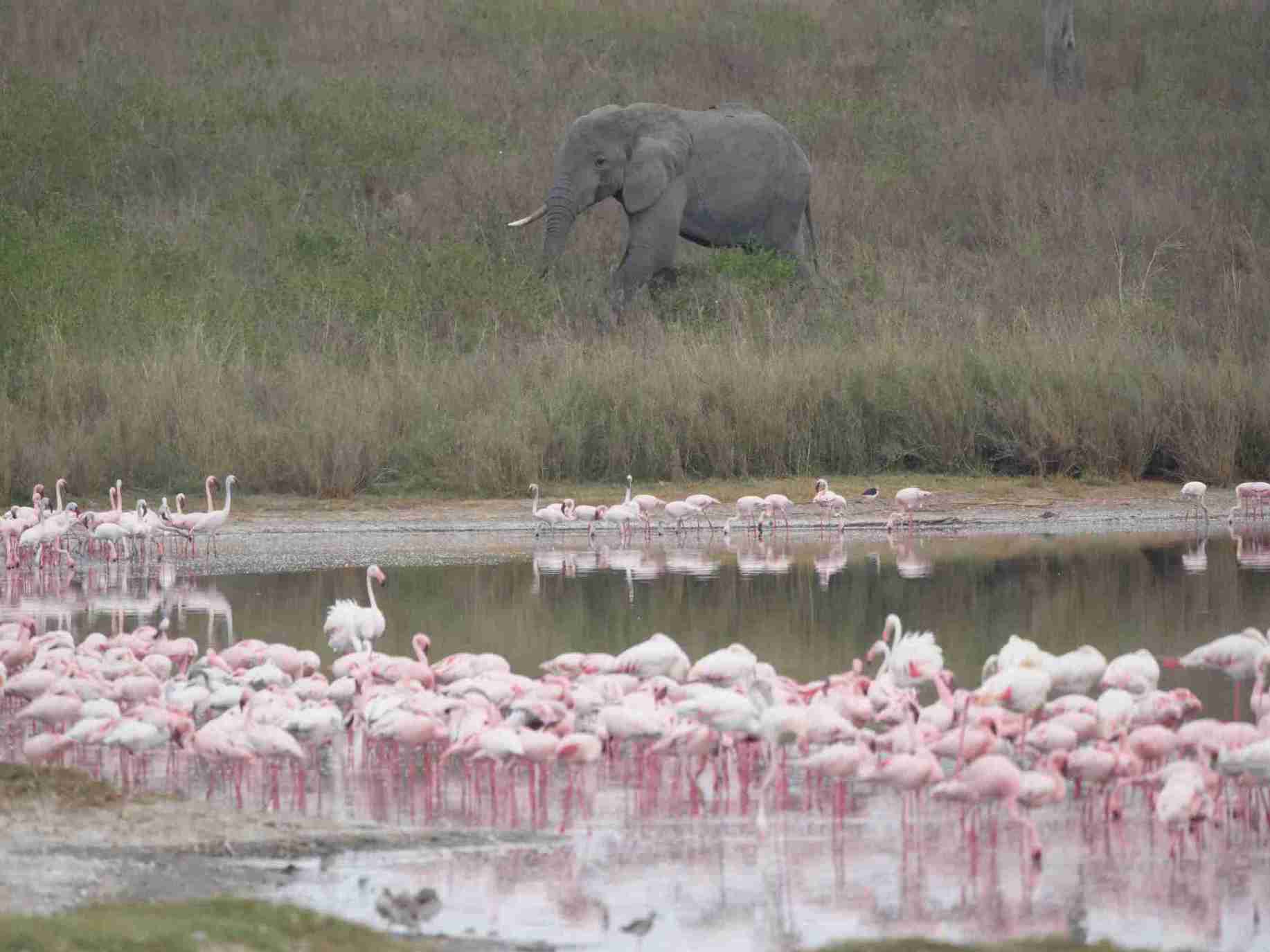 Ngorongoro-Hochland und ist Heimat vieler Vögel, darunter Flamingos,